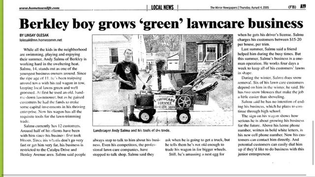 Founded in 2005 by Andy Salmu, Andy’s Landscape Services began when Andy, at just 14 years old, went door to door cutting grass in his neighborhood. Through hard work, dedication, and a passion for creating beautiful outdoor spaces, the company has evolved into an award-winning landscape design, construction, and maintenance firm.